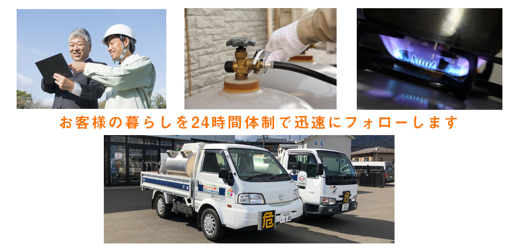 ガスの販売・取り扱い 高効率エネルギー機器 快適空間の実現 24時間安心サポート 施工事例 会社概要 採用情報 アクセス